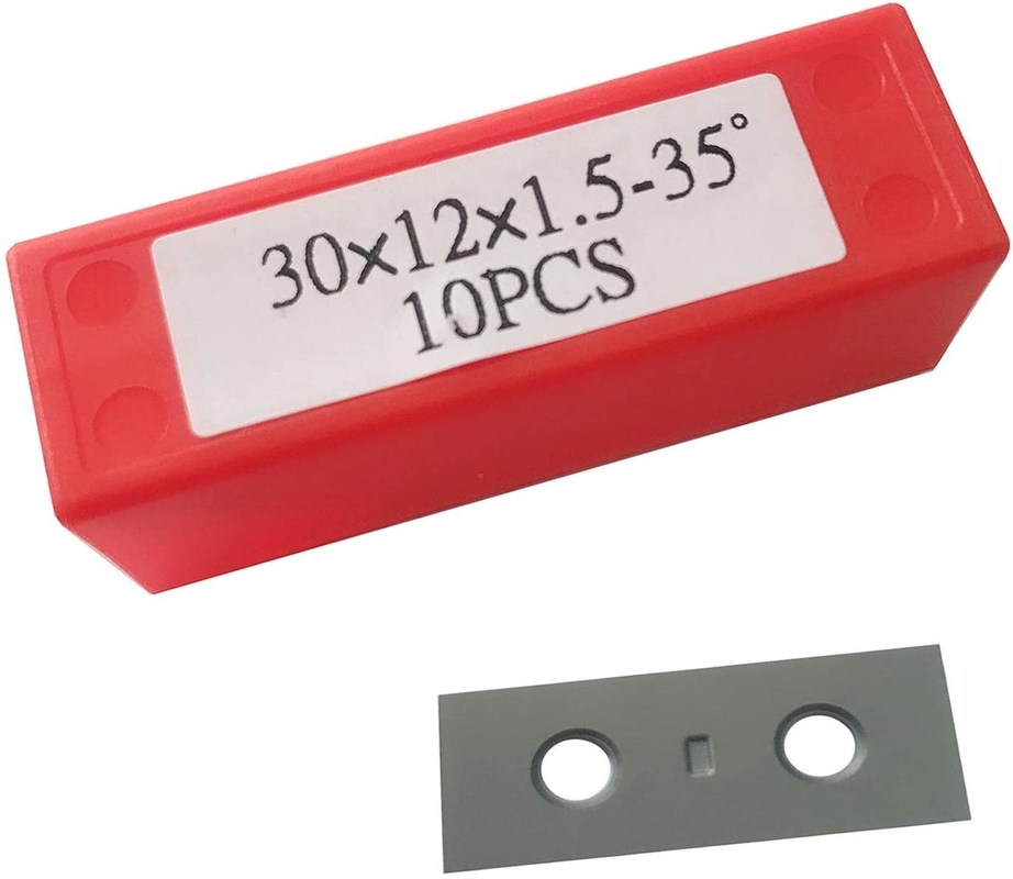 標準的なサイズ30mm (長さ) X12mm (幅) X1.5mm (厚さ)、35度の切削角。